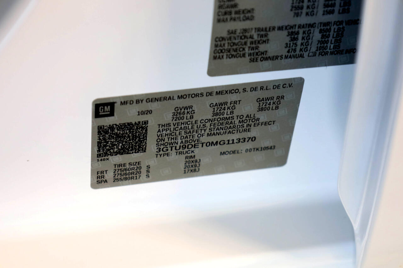 • GVWR, 7100 lbs. (3221 kg) (Requires Crew Cab 4WD model with (L84) 5.3L EcoTec3 V8 engine or (L87) 6.2L EcoTec3 V8 engine without (NHT) Max Trailering Package. Requires Crew Cab 2WD model with (L84) 5.3L EcoTec3 V8 engine and (NHT) Max Trailering Package.)